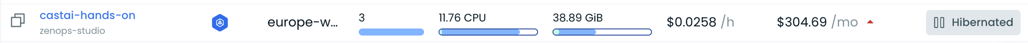 L'une des fonctionnalités de CAST.AI est de mettre en hibernation un cluster Kubernetes à des périodes où le cluster n'est pas utilisé.