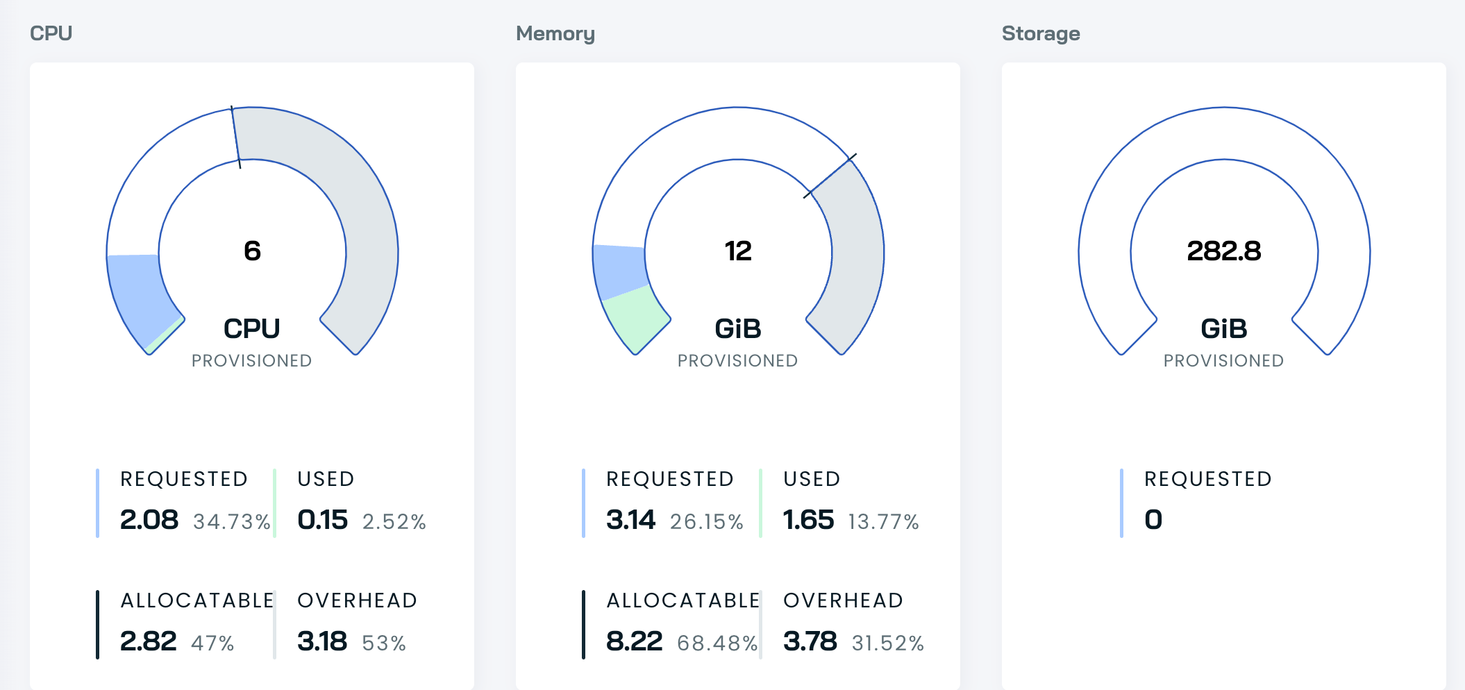 Le dashboard vous donne des informations sur les ressources réellement utilisées :