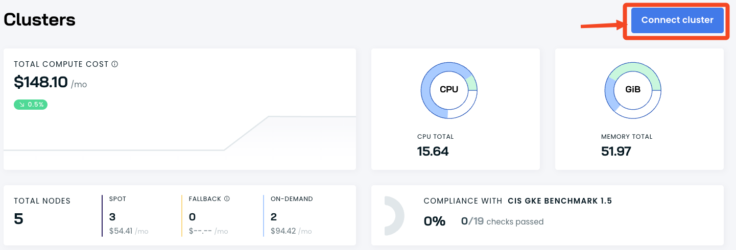 Pour connecter votre cluster, cliquer sur le bouton Connect Cluster en haut à droite